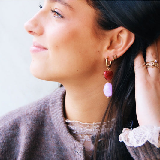 Wide hoop with nugget and heart - lilac/bordeaux