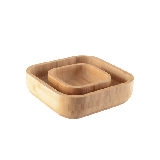 WOODEN SALAD BOWL WITH SILVER HANDLES 25X25X8CM