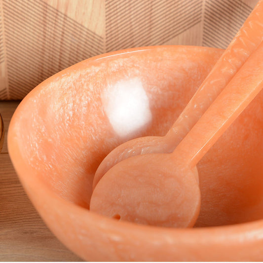 Saladier and white salad and mango salad cutlery