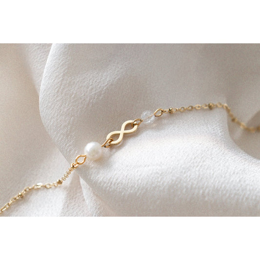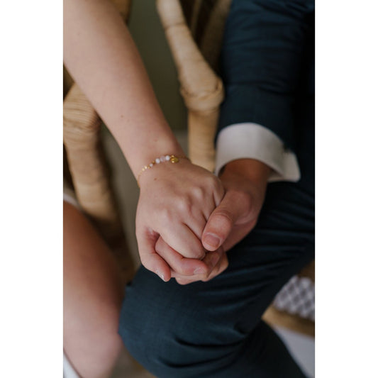 Bridal Bracelet Rose Quartz and Moonstone - Gold