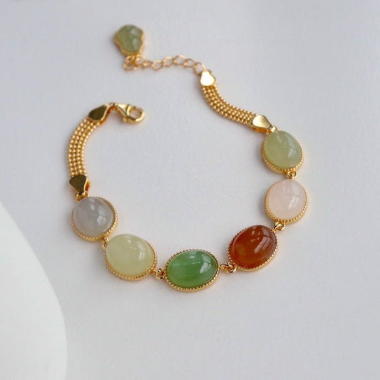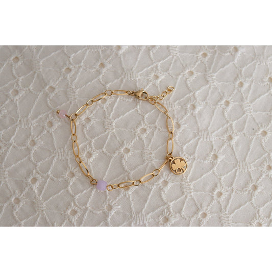 Chalcedony, Rose Quartz & Four Leaf Clover Bracelet - Gold