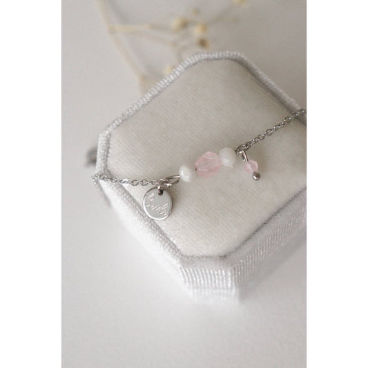 Bridal Bracelet Rose Quartz and Moonstone - Silver