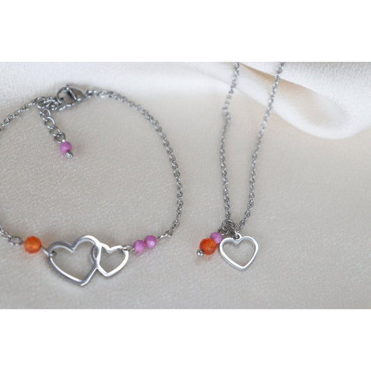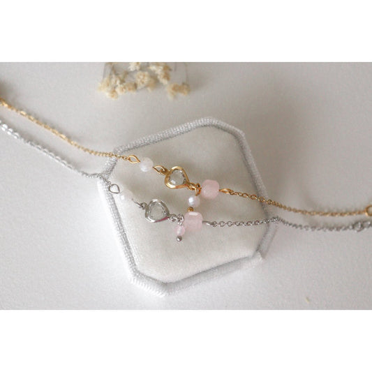 Crystal heart, moonstone and rose quartz bracelet - silver