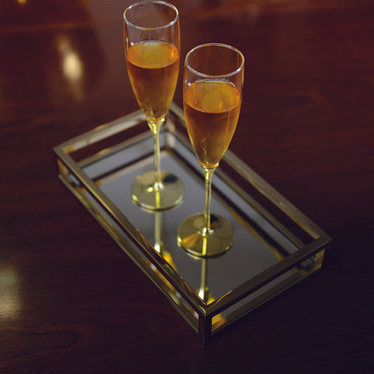 SET OF 2 GLASS FLUTES GOLD METAL FOOT