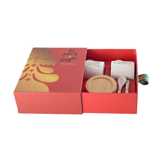 FIR COFFEE CUPS WITH WOODEN SPOONS AND SAUCERS - SET OF 2