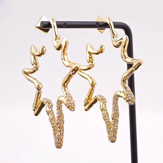 Unique Green-eye Cobra Design Earrings - Gold n Silver
