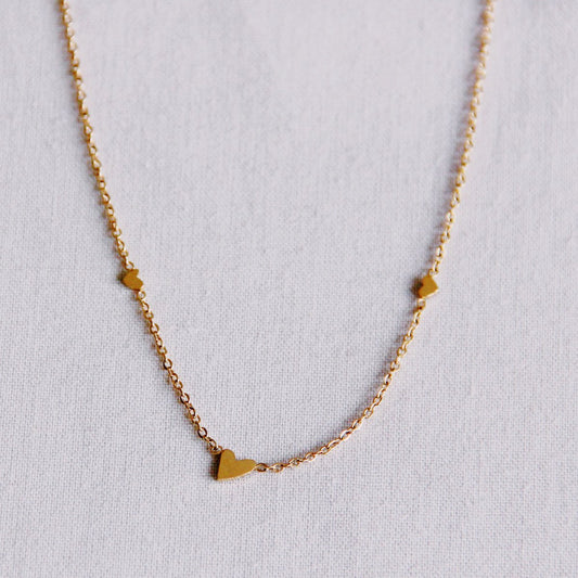FW268 - Stainless steel fine necklace with 3 mini hearts - gold