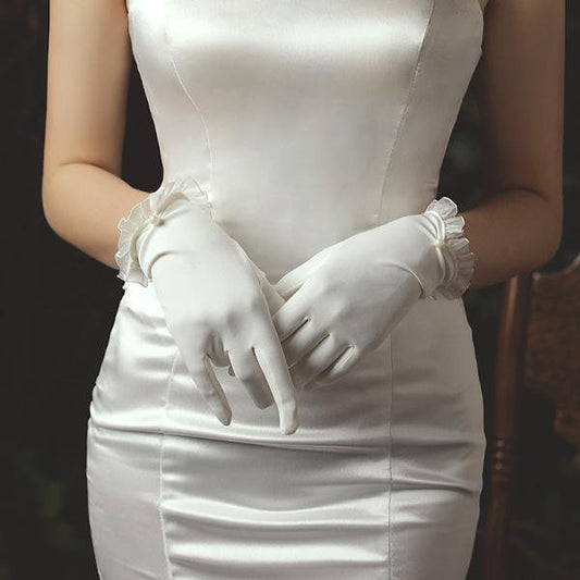 Sophisticated White Bridal Gloves with Lace Trims