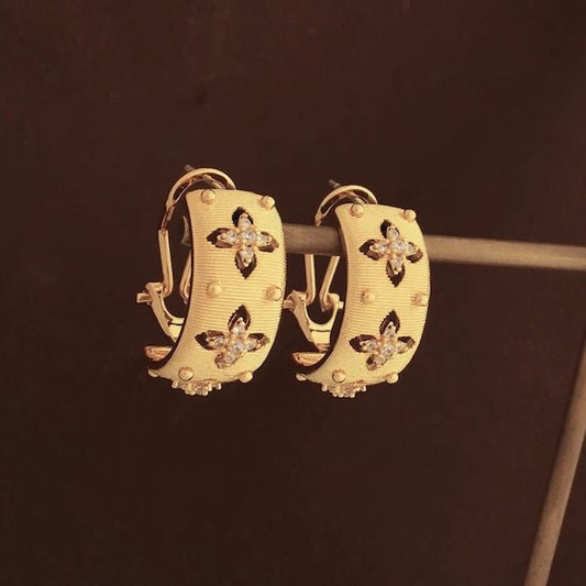 Luxurious Sparkling Cross Flower Hoop Earrings