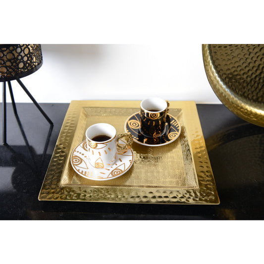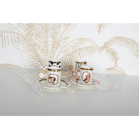 BLACK AND WHITE TRAYS WITH CAT DESIGN - SET OF 2