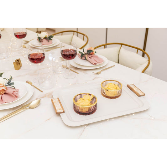 WHITE RECTANGULAR TRAY WITH WOODEN HANDLES 41X31CM