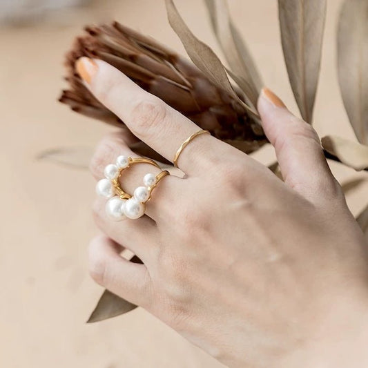 Bold Look U Shape Pearl Ring