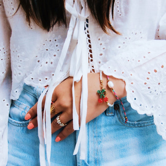 Satin bracelet with rings - salmon/gold