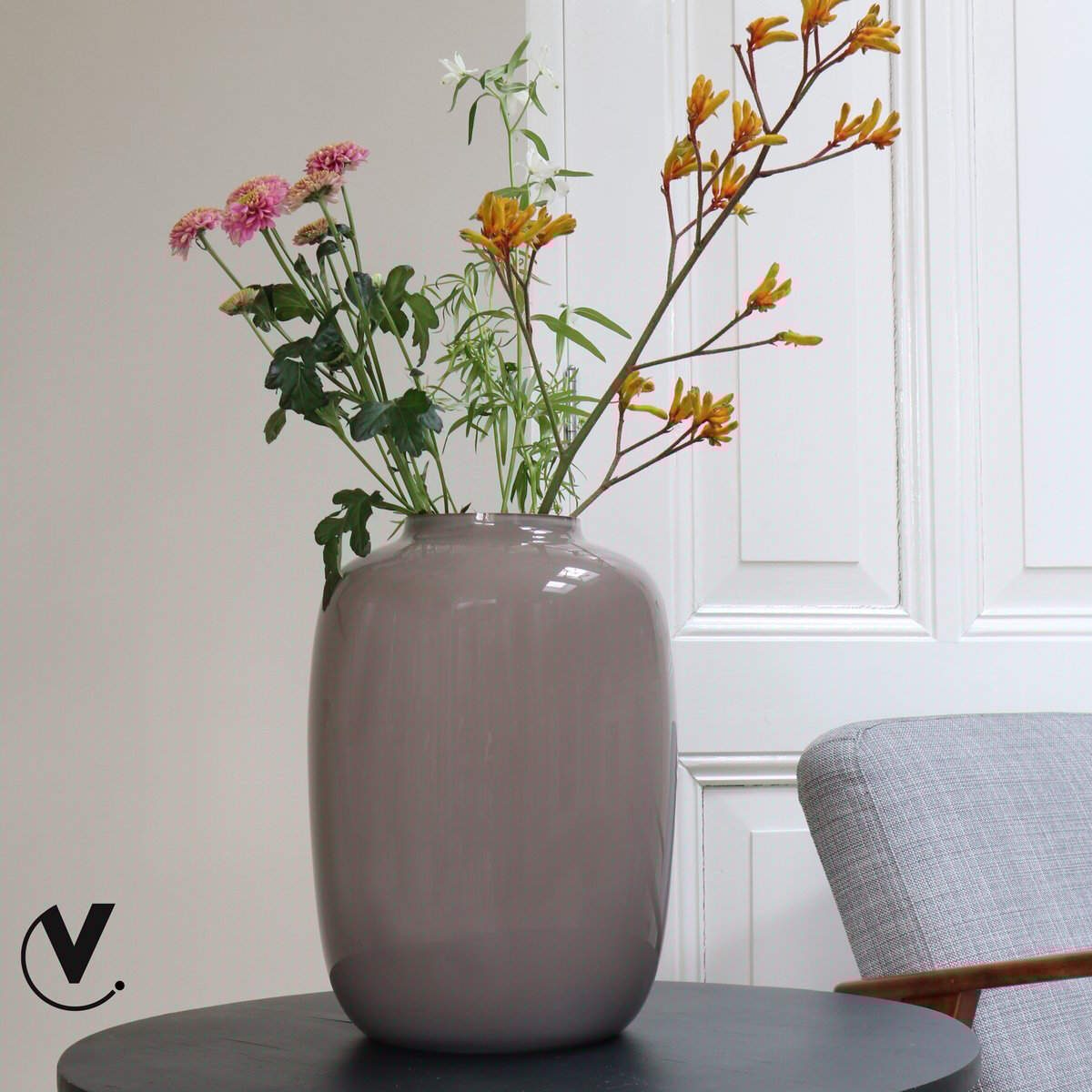For the enthusiasts among us; This is our well-known vase Artic from Vase The World in a beautiful earthy shade. This vase makes every bouquet of flowers stand out and look fantastic, because you can't ignore it.