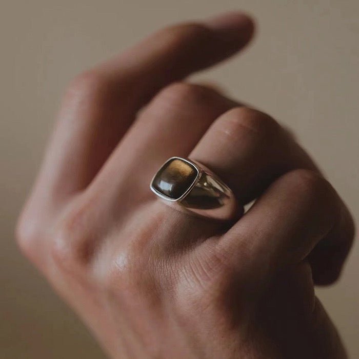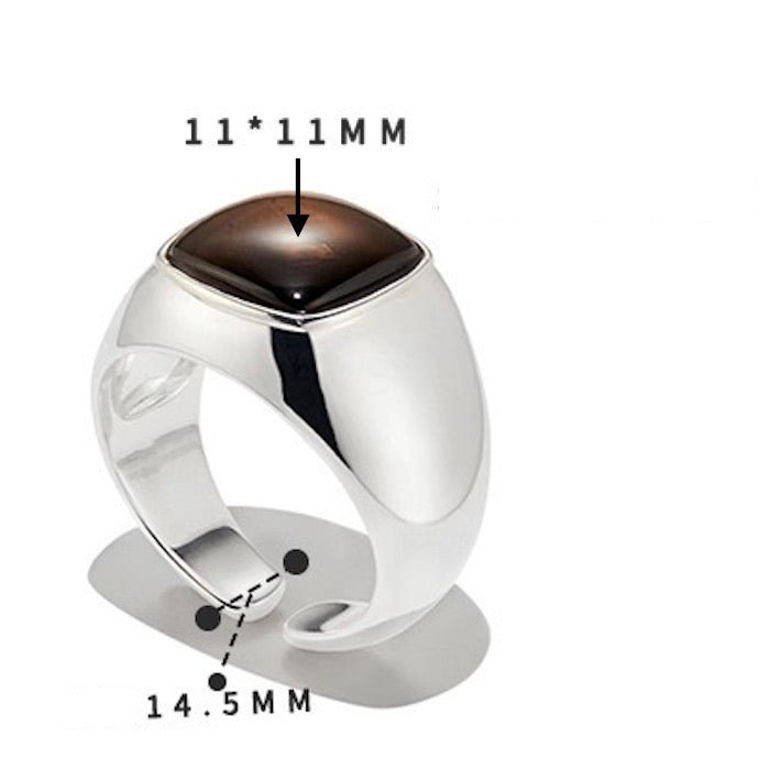 Crafted from solid silver, the wide band exudes a bold and unisex aesthetic, making it a versatile accessory for any occasion. The centerpiece of this stunning ring is a 1.1cm square Genuine Smoky Quartz stone, renowned not only for its aesthetic appeal but also for its robust healing properties.The Genuine Smoky Quartz featured in the ring is known for its strong healing power, promoting grounding and protection. The ring's adjustable design allows for a tailored fit, accommodating sizes from 6.6 to 10, with a preset size of 8.5 for added convenience.