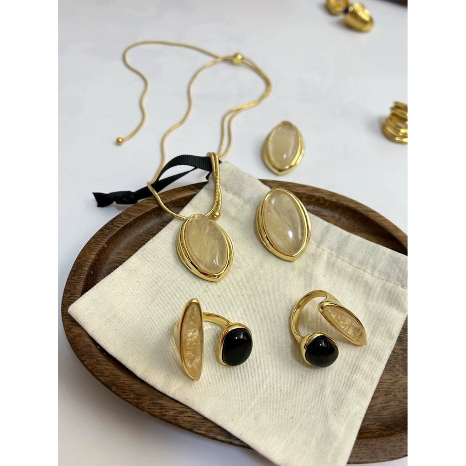 Make a bold statement with this minimalist yet chunky wide bangle, crafted to elevate any look. The design is clean and sculptural, giving it a powerful presence on the wrist. Made from brass with a luxurious gold-plated finish, it features a genuine gold rutilated quartz stone — known for its unique strands and strong healing energy. The inner diameters of the bangle measure approximately 6.3 cm by 3.7 cm for a comfortable fit. Complete the set with our matching gold rutilated quartz necklace, earrings, and rings. Whether as a standout accessory or a meaningful gift for him or her, this piece brings timeless charm with modern edge.