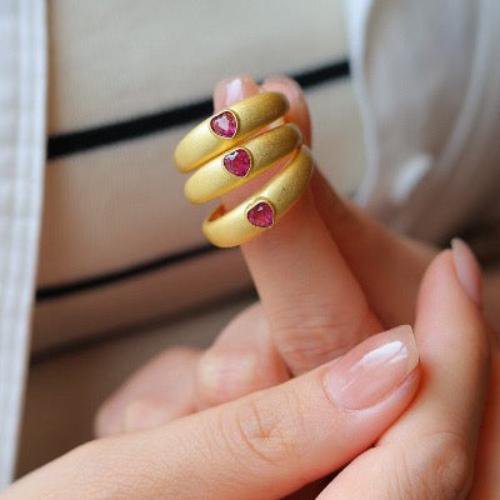 The ring boasts a chunky look that adds a bold statement to your style while maintaining a refined and minimalist design. The adjustable feature ensures a perfect fit, allowing you to wear it comfortably every day. The preset ring size is 9, providing a starting point for customization.At the heart of the ring is a vivid pink tourmaline, expertly cut into a heart shape. Beyond its captivating appearance, the genuine pink tourmaline is renowned for its strong healing power, adding a meaningful touch to this already exquisite piece. Whether you're treating yourself or looking for a thoughtful gift, the Classic Pink Tourmaline Gold Vermeil Ring is a timeless expression of style and sentiment.