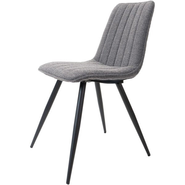 The Joppe dining room chair is covered with a soft boucle fabric, which provides a luxurious and comfortable seating experience.