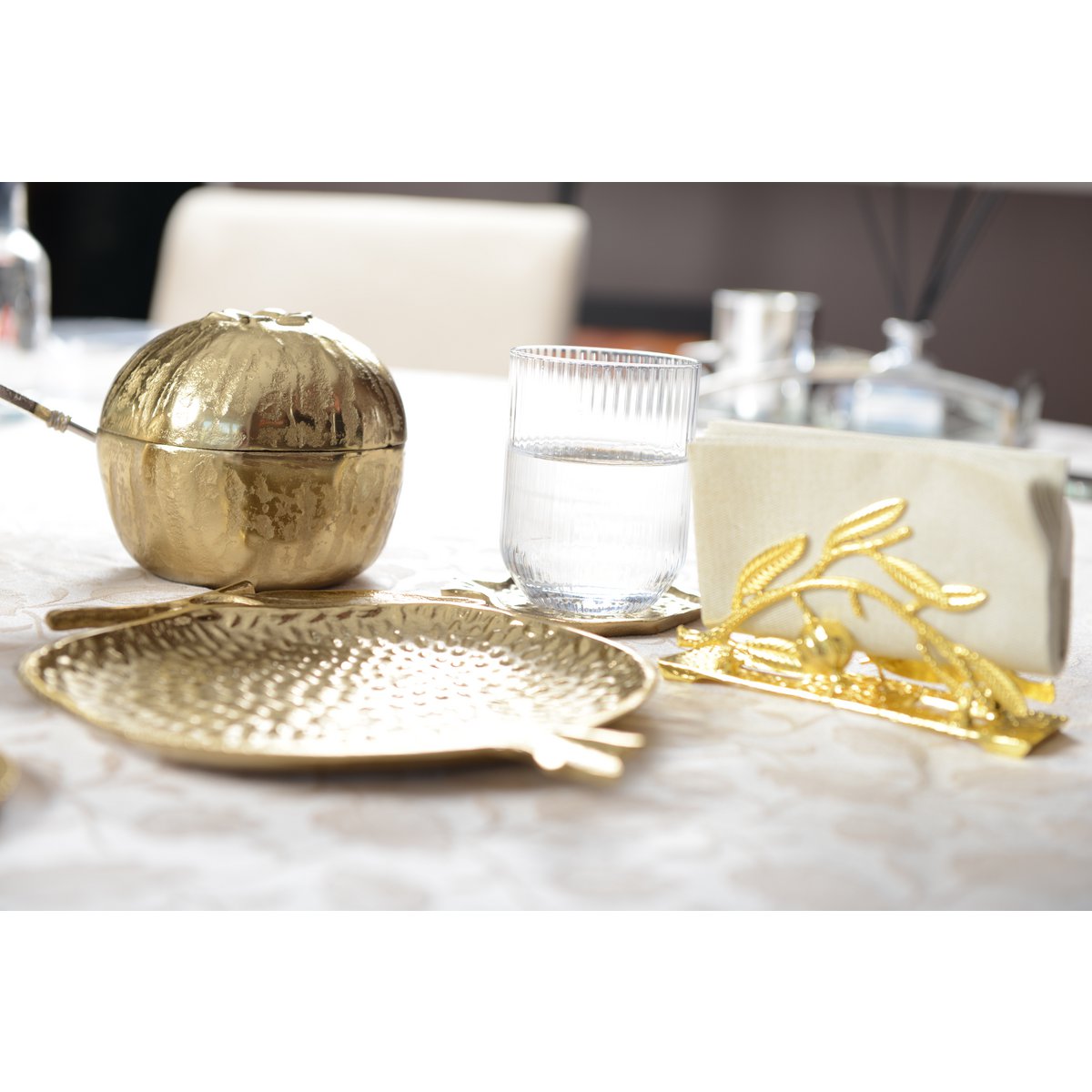 Gold -shaped glass in the shape of a golden pomegranate