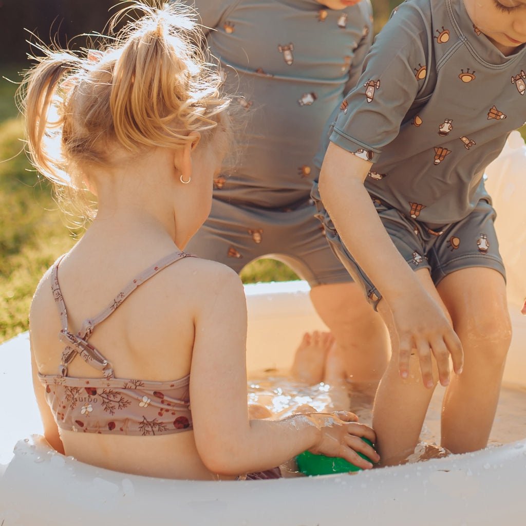 The most adorable little bikini with spaghetti straps and flower print. The Bikini is made of recycled polyester with UV Protection 50+, which is the Highest Possible Protection.
