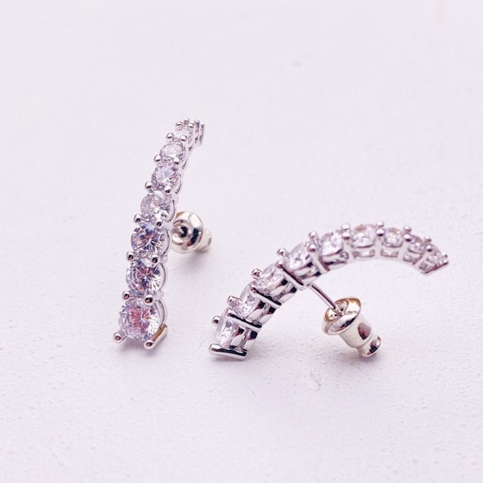 These unique sparkling earrings are designed to dazzle with their elegant yet bold style. Inlaid with AAAAA quality zirconias, they shine brilliantly, catching the light from every angle. The bottom of the earrings features a subtle curve, creating the illusion of an ear cuff for a modern and stylish touch. This design makes them stand out while remaining versatile for both casual and formal wear. Crafted from brass with a gold or silver-plated frame, these earrings blend durability with luxury. Their chunky yet refined look adds an effortless statement to any outfit. A perfect and unique gift for her, these earrings bring a mix of elegance and trendiness. Whether for daily wear or special occasions, they are sure to become a favorite accessory.