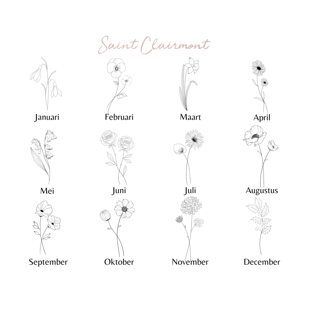 Gold birth flower bracelet, made of stainless steel. Each month has its own birth flower. A birthflower bracelet is a unique gift to give, for example on someone's birthday or as a maternity gift.