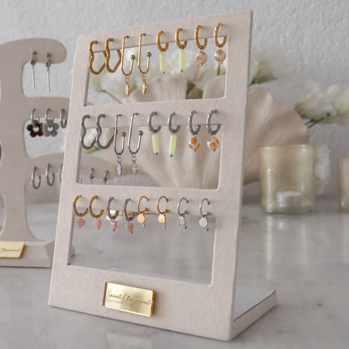 Our beautiful velvet earrings display is a beautiful addition to any store! The jewelry has a luxurious look and stands out well. The earrings are clearly visible and the neutral color of the display makes the earrings stand out extra well.