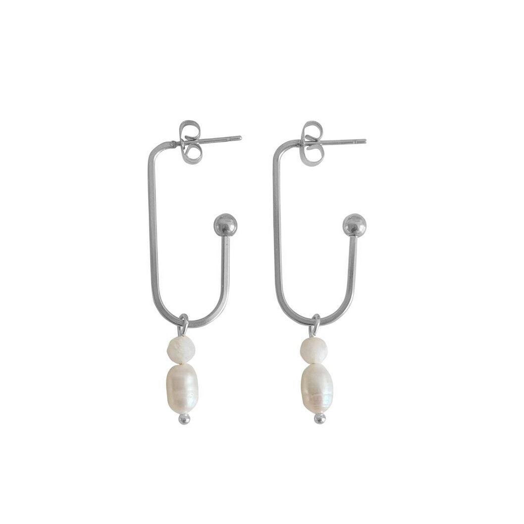 Pearl & Moonstone Elongated Earrings - Silver, made of stainless steel. The earrings are hypoallergenic, highly durable and colourfast.