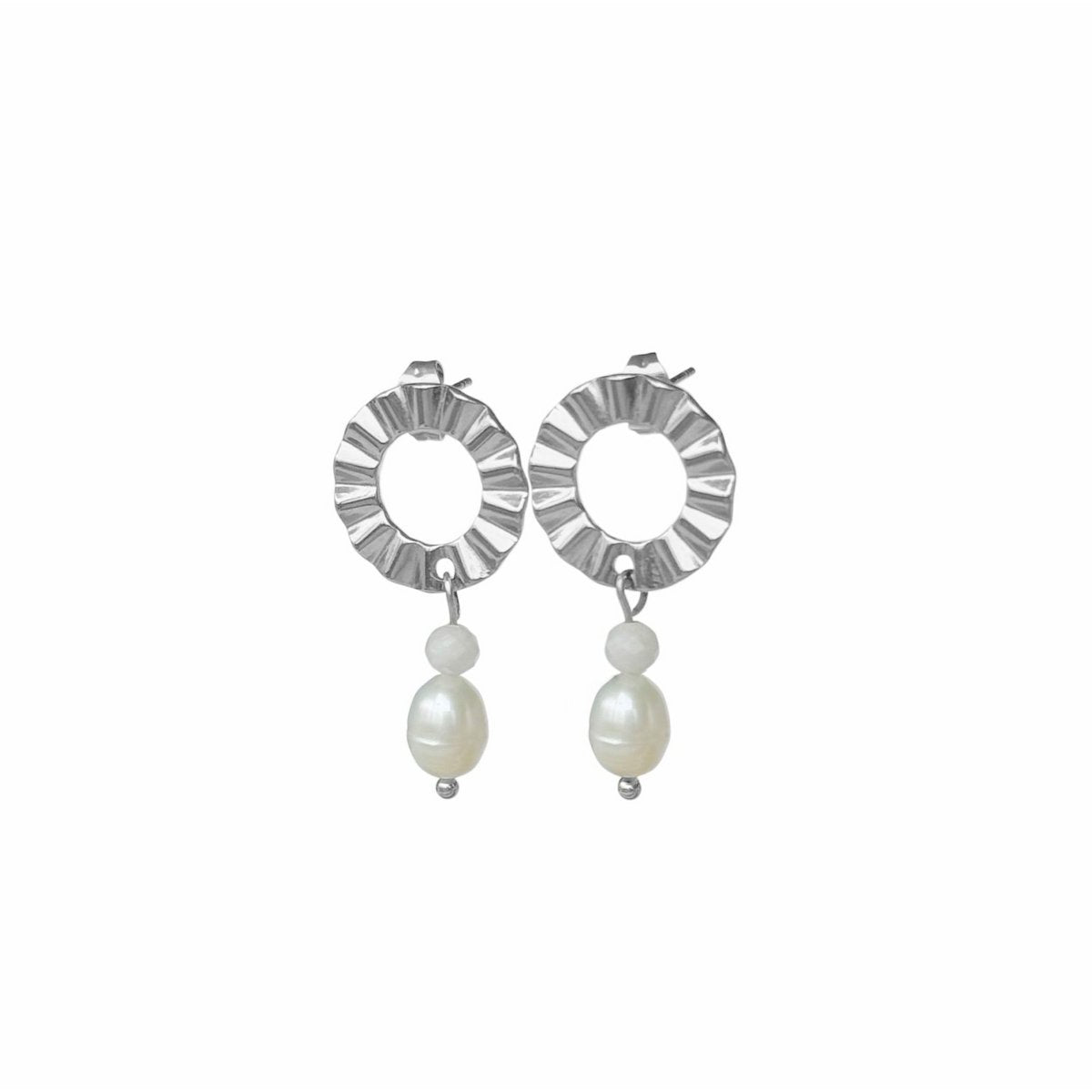 Pearl & Maansteen Statement earrings made from Stainless Steel. The earrings are chic and elegant, perfect to finish your bridal look. The earrings have an ear plug, making the earring easy to put in and out. The earrings are also hypoallergenic, strong, durable and color -fast.