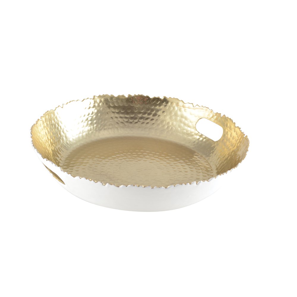 PLATEAU ROND BLANC ET DORE MARTELE 33X33X5.5CM