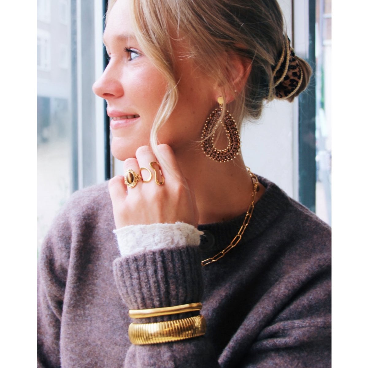 This retro bangle is your new statement piece. Thanks to the stretch, the bracelet fits perfectly around your wrist, without any hassle with clasps. Combine with other bracelets or wear this statement piece solo for instant impact!