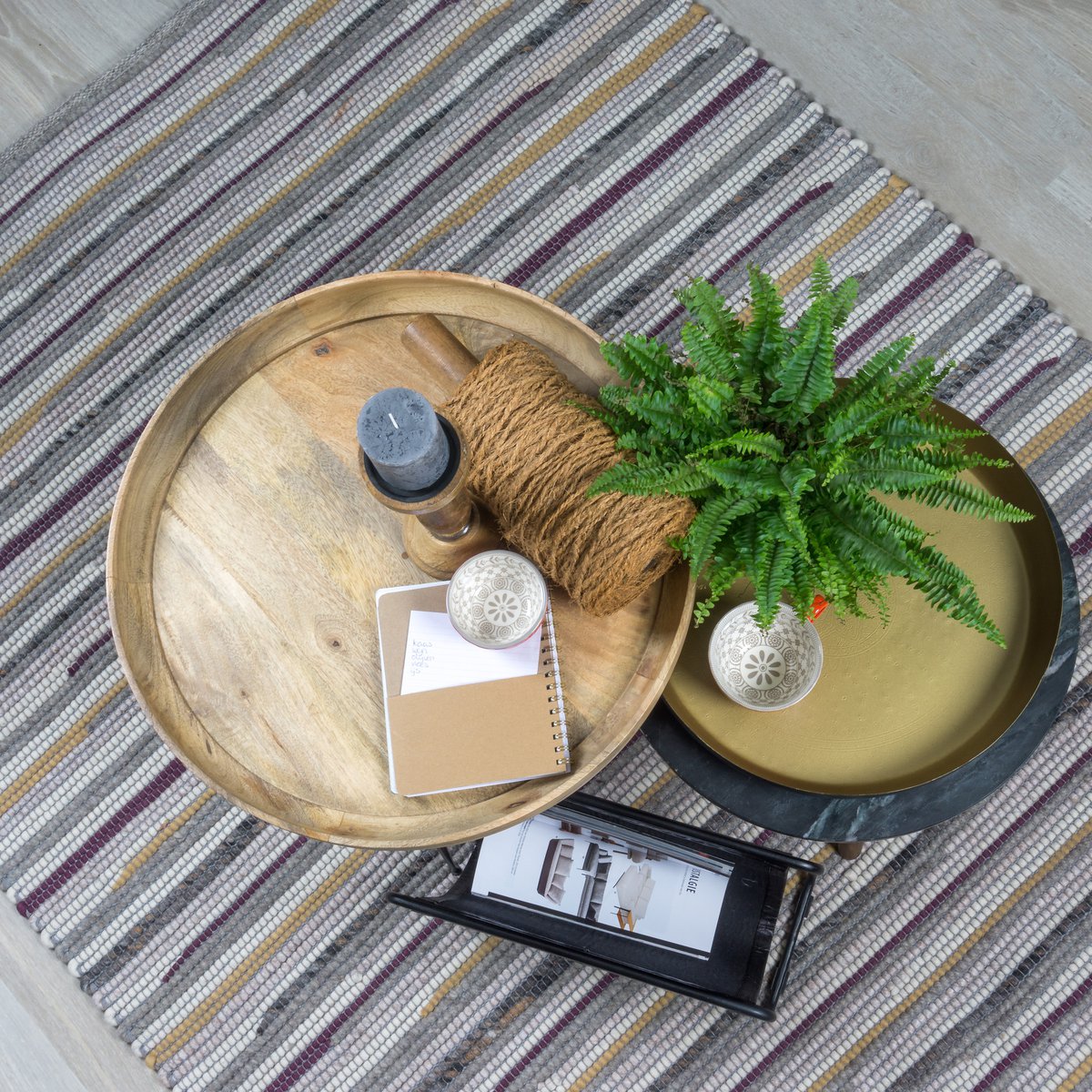 Rug Homeland is a beautiful hand-woven rug, made of wool. This is a modern rug with a low pile and a kilim-band finish. This type of rug can be used in almost any room or living style. In addition, the cheerful colors of this carpet immediately give your interior atmosphere!
