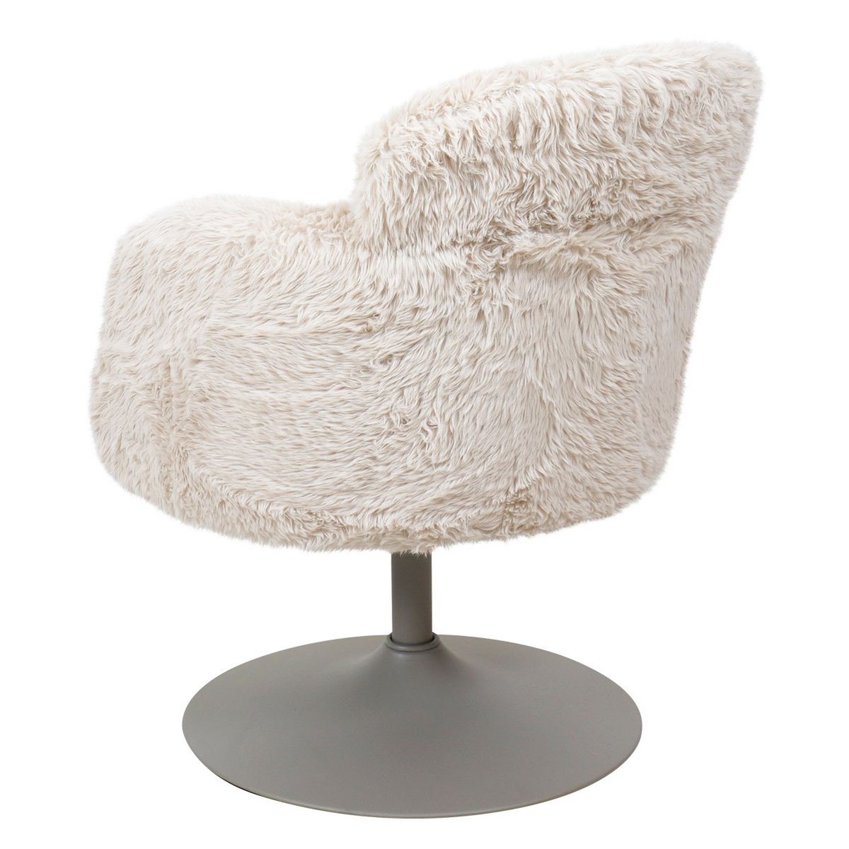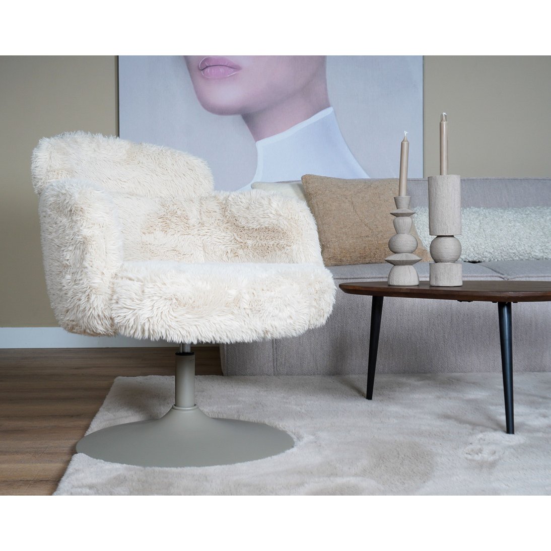 Armchair Scottie Fluffy Creme is an eye -catcher in your interior! The soft, cuddly upholstery in a neutral cream color provides a cozy and warm appearance. The ergonomic design with armrests offers optimum seating comfort, ideal for long relaxation moments. Thanks to the sturdy metal turning poach in the color Taupe, the chair has a modern look and offers stability.