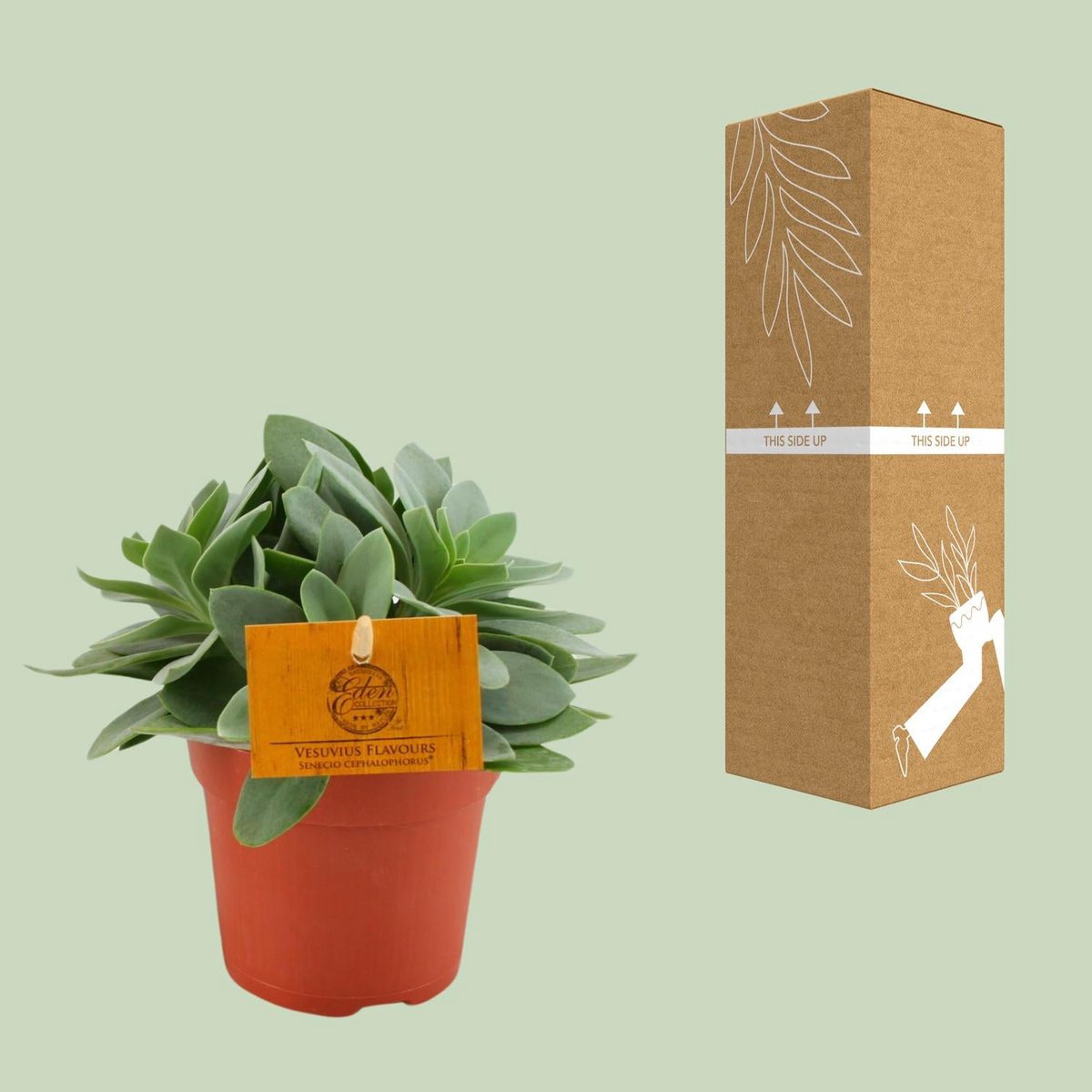 Senecio Cephalophorus, ook bekend als 'Ruby Slippers' of 'Scarlet Senecio', is een opvallende en veelzijdige vetplant die zowel binnen als buiten goed gedijt. Deze plant is afkomstig uit de droge gebieden van Zuid-Afrika en staat bekend om zijn robuuste en onderhoudsarme karakter. Om voor Senecio Cephalophorus te zorgen, zorg voor helder, indirect licht, hoewel het direct zonlicht kan verdragen. Geef spaarzaam water, laat de aarde volledig uitdrogen tussen de gietbeurten door en verminder het water geven in de winter. Houd de temperatuur tussen 10°C en 24°C (50°F tot 75°F) en gebruik goed doorlatende grond. Bemest maandelijks in de lente en zomer met verdunde cactus- of vetplantenmeststof, maar sla het voeden in de winter over. Verwijder dode bladeren en snoei lange groei om het uiterlijk te behouden. Vermeerder door middel van blad- of stengelstekken nadat je ze een dag of twee hebt laten drogen. Let op voor ongedierte zoals wolluizen en bladluizen, en behandel ze onmiddellijk. Een leuk weetie over Senecio Cephalophorus is dat de bladeren van kleur kunnen veranderen op basis van blootstelling aan zonlicht. Hoewel ze meestal een mooie blauwgroene tint vertonen, kunnen de randen van de bladeren rood of paars worden wanneer ze blootgesteld worden aan fel zonlicht, wat een extra kleuraccent geeft aan deze al opvallende plant. - Senecio Cephalophorus, ook bekend als 'Ruby Slippers' of 'Scarlet Senecio', komt oorspronkelijk uit Zuid-Afrika. - Zijn levendige bladeren en gemakkelijke verzorging maken het een populaire keuze voor zowel binnen- als buitentuinen. - De plant is droogtetolerant en gedijt goed in goed doorlatende grond. - Naast de kleurrijke bladeren produceert het kleine gele bloemen in de zomermaanden. - Senecio Cephalophorus behoort tot de familie van de Asteraceae, waar ook zonnebloemen en madeliefjes toe behoren.