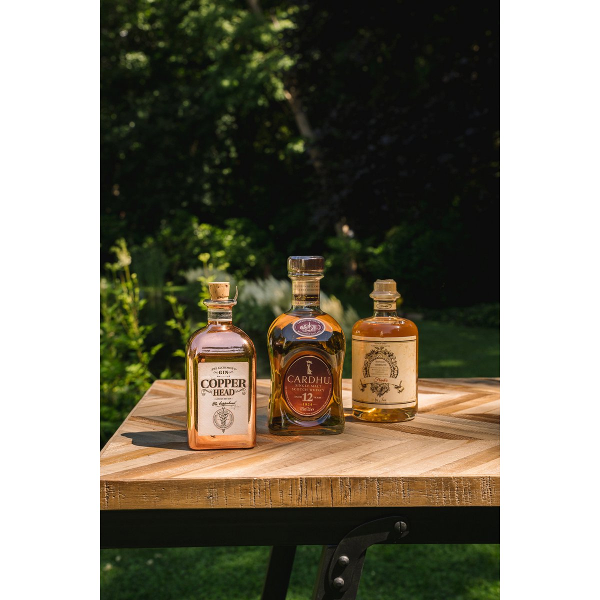 This high quality console is made from teak wood (in a very elegant herringbone pattern) and black iron. The console is foldable and can be used to place your favourite deco items on. Also available in black.