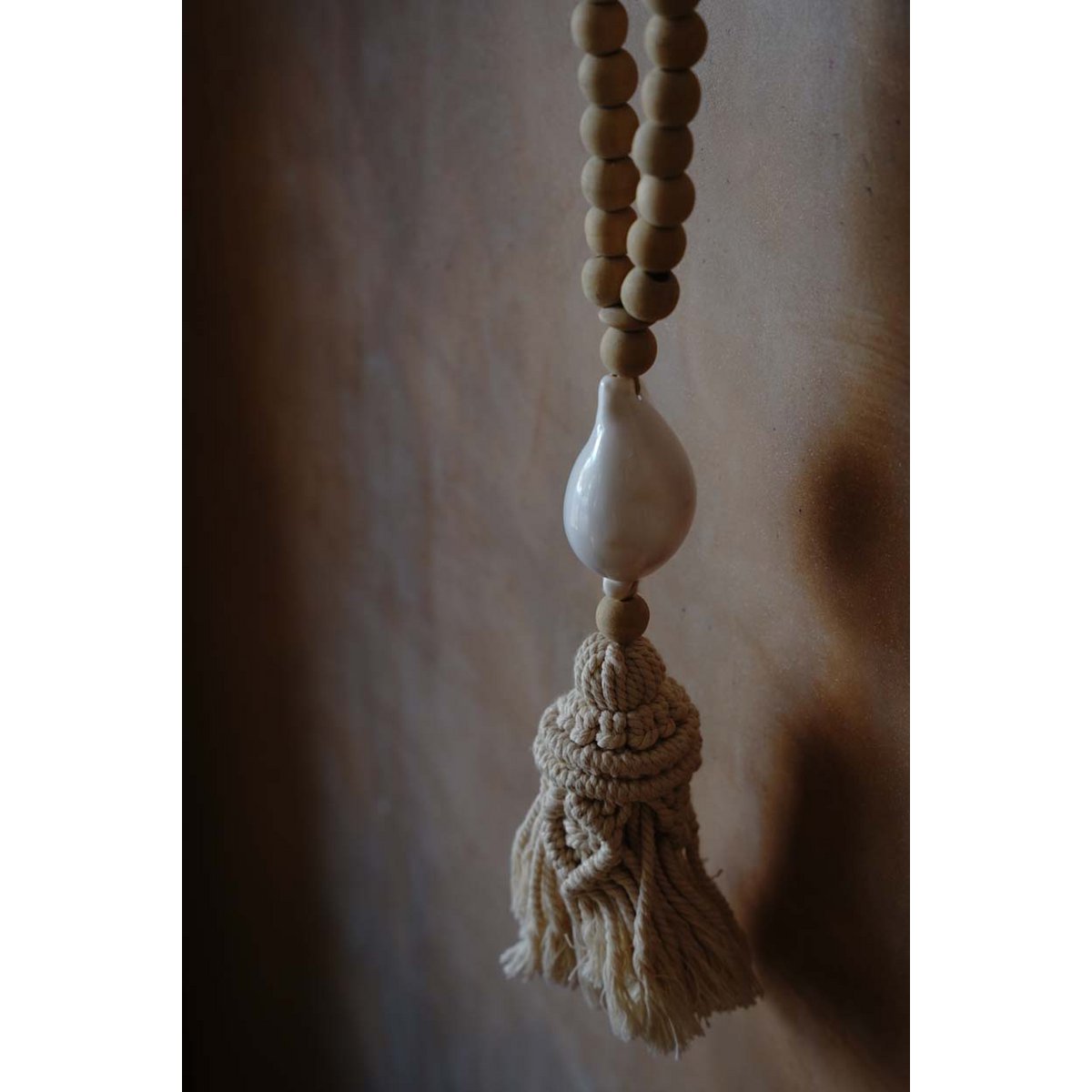 Light and versatile, it can be worn around the neck or styled as a decorative accent on a bag, giving everyday looks a touch of seaside character. Made from natural wood and polished shell, it balances organic beauty with resilience, creating a piece that feels both refined and enduring.