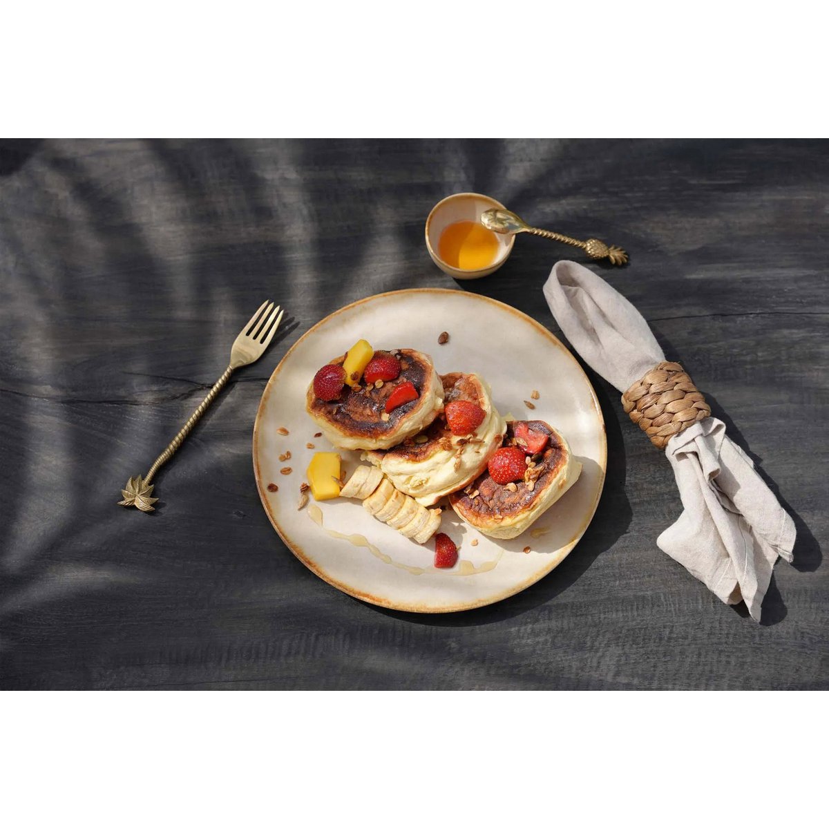 Our first cutlery collection is here and it's pretty & shiny! These forks and spoons are pure luxury, made from solid brass with amazing details. Your guests will be impressed by the weight and quality of these real brass must-haves. All pieces are decorated with a pineapple or a palm tree - it can't get more tropical than this. Available in various sizes & designs.