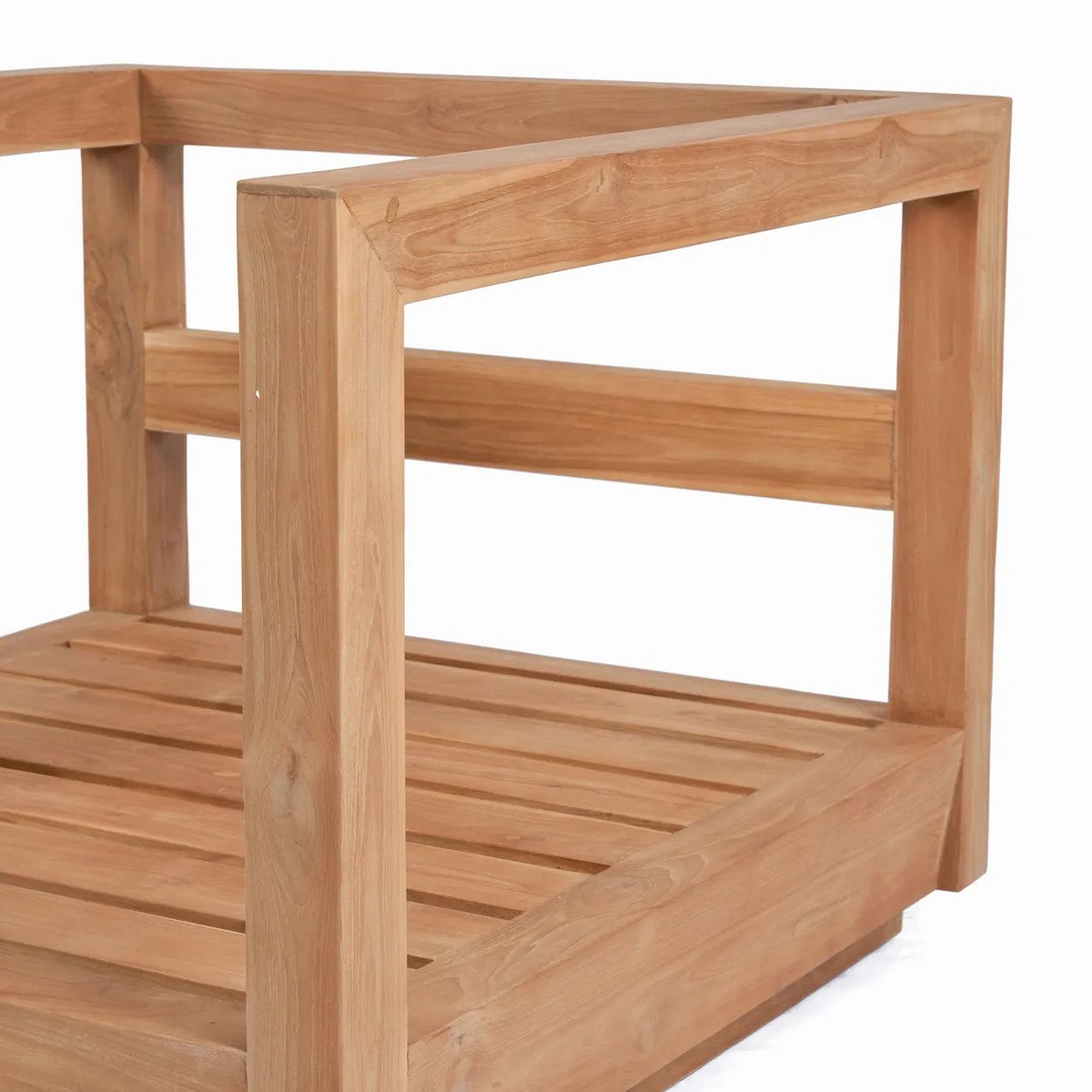 Sit back and relax in our Umalas one seater, suitable for both inside and outdoor. Made from recycled teak, the frame is sturdy and eco-friendly. The cushions are made from local sunbrella and are perfect for your outdoor space. This sleek design will look amazing next to your pool or on your porch!
