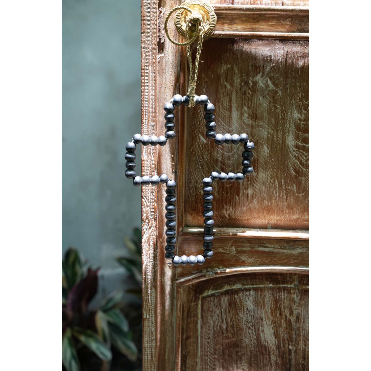 Whether you're religious or not, the cross is always a beautiful symbol. Especially this one handmade with wooden pearls. Hang this decorative cross wherever you like. Be inspired by your own home decoration.