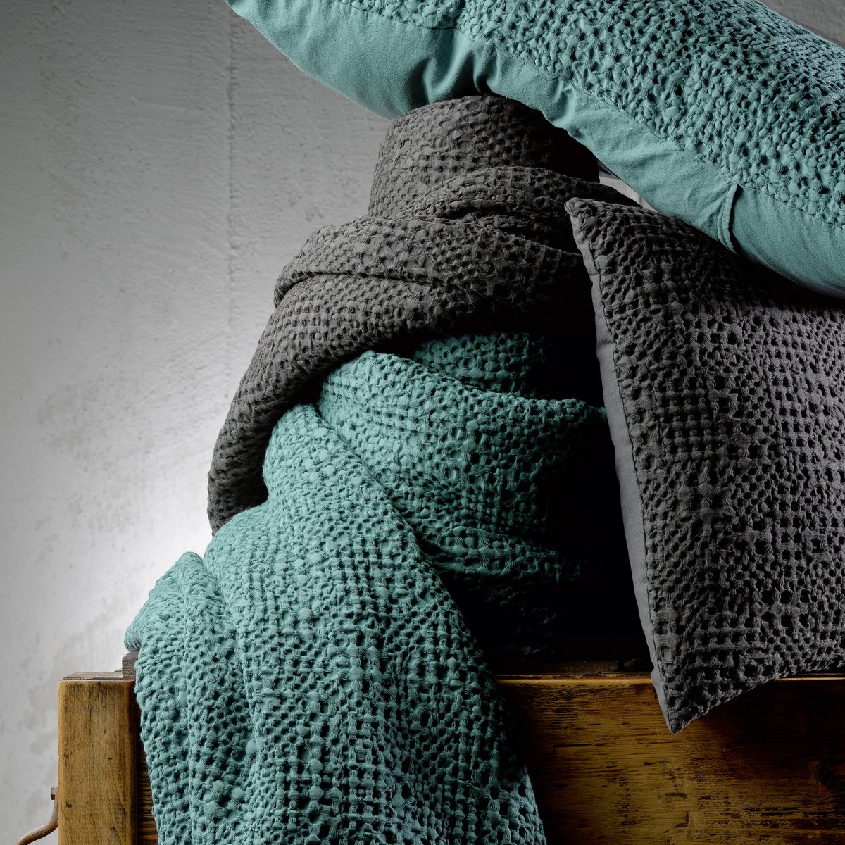 From the Vivaraise brand, the TANA throw is an irregular honeycomb 100% stonewashed cotton with an original appearance and texture. Infused with carefully chosen colors, the honeycomb treated stonewash sublimates the color and provides a very pleasant touch and fall. In addition to dressing your bed in a very chic way, it will bring a decorative touch to your entire room. TANA throws and their solid colors are ideal for daring to mix textures and colors with other Vivaraise products to create a personalized decoration that is unlike any other.