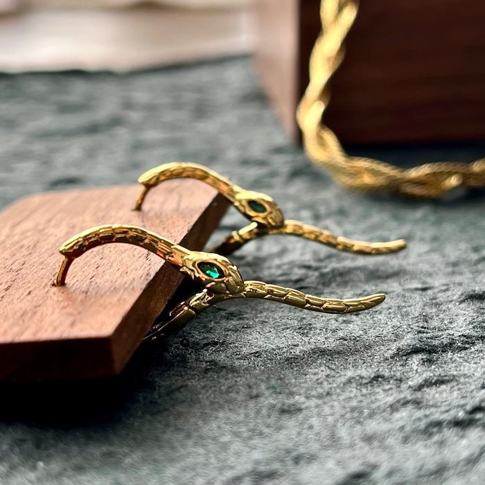 Unique Green-eye Cobra Design Earrings - Gold n Silver