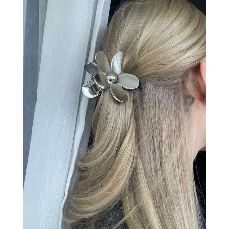 These Vivid Flowe Claw Metal Hair Clips feature a unique flower design, adding a modern touch to your hairstyle. Available in gold and silver plating, these clips have a fluid wave line pattern that stands out. Approximately 7 cm in diameter. Ideal for daily wear, these hair clips are easy to pair with any outfit. Their chunky and special design makes them a statement accessory.