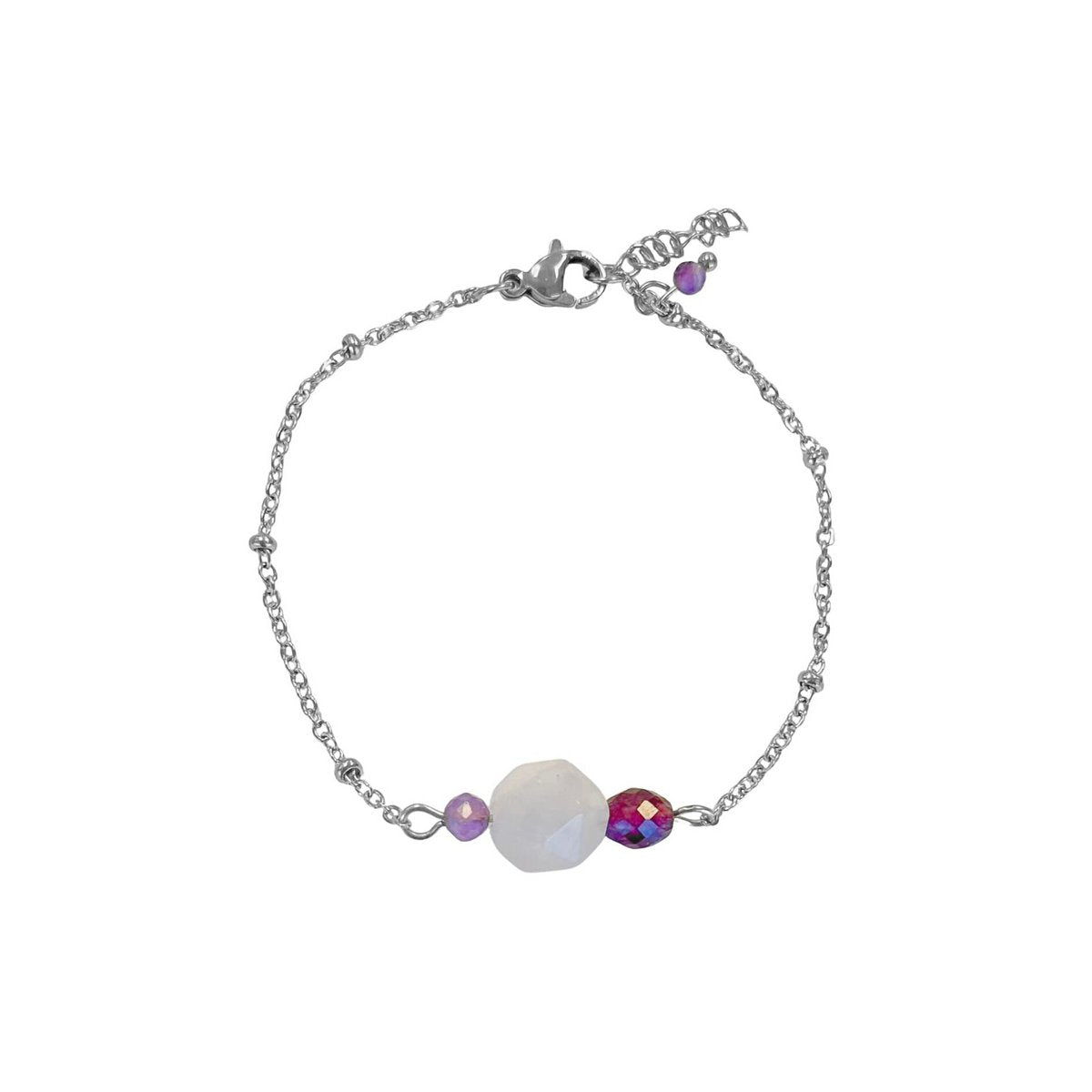 Willpower & Vitality Bracelet, with Rose Quartz, Amethyst and Garnet, made of stainless steel. The Willpower & Vitality bracelet is a powerful combination of gemstones that support you with inner strength, energy and balance. This bracelet has been carefully composed with three stones that together represent motivation, life energy and mental resilience.